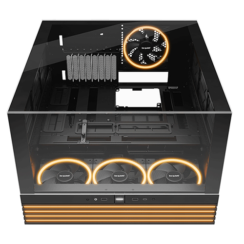 | Оснащення | Повністю прозорі фронтальна та бокова панелі для приголомшливого панорамного огляду усіх компонентів ПК. Підтримка материнських плат з роз'ємами на зворотній стороні. |