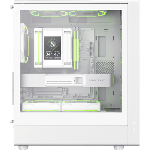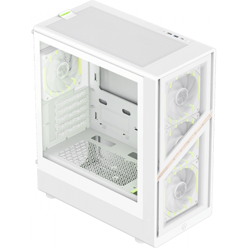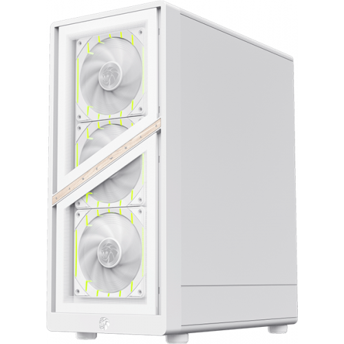 | Оснащення | Оновлена концепція GameMax із мотивами лева та фірмовими «слідами кігтів» на сітчастій передній панелі не лише підкреслює агресивний стиль, а й забезпечує високий рівень повітряного потоку. |