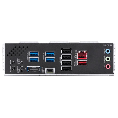 2 x Thunderbolt 4 USB Type-C ports 7 x USB 3.2 Gen 2 ports (6 x Type-A + 1 x USB Type-C) 2 x USB 2.0 ports (2 x Type-A) 1 x HDMI port 1 x Wi-Fi Module 1 x Intel 2.5Gb Ethernet port 5 x Gold-plated audio jacks 1 x Optical S/PDIF out port 1 x BIOS FlashBack button 1 x Clear CMOS button |